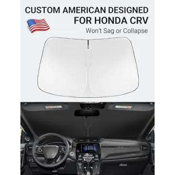 Show more Experience unparalleled protection from the sun with the Proadsy 2025 Upgrade Windshield Sun Shade, custom-engineered to fit the 2017-2022 Honda CRV. This expertly designed shade is not only Certified Sustainable but also showcases a modern aesthetic that complements your vehicle’s interior. With a precise cut and reinforced steel rings, it guarantees a secure fit without the hassles of suction cups, eliminating sagging and collapsing that is typical of traditional sunshades. Perfect for tech-savvy drivers and eco-conscious consumers, this windshield shade ensures a perfect fit for an optimal driving experience.