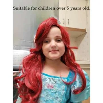 Probeauty Girls Red Mermaid Wig with Starfish Hair Clips, 21inch Kids Dark Red Mermaid Wig Body Wave Wig for Halloween Costume