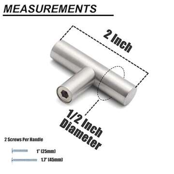 Probrico Stainless Steel Modern Cabinet Drawer Handle Pulls Kitchen Cupboard T Bar Knobs and Pull Handles Brushed Nickel - Single Hole - 15Pack