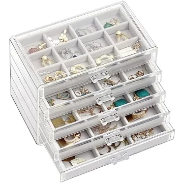 Show moreIntroducing the ProCase Earring Holder Organizer Jewelry Box, the perfect harmony of elegance and practicality for your cherished jewelry collection! Crafted from high-quality clear acrylic, this stunning jewelry organizer does more than just keep your favorite pieces dust-free; it highlights them beautifully by allowing you to view your treasures at a glance. This thoughtfully designed jewelry box features 5 removable velvet trays that slide out effortlessly, providing a customizable storage solution that caters to your jewelry needs while enhancing your dressing space.
