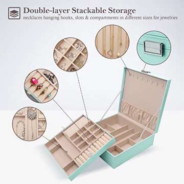 ProCase Jewelry Box for Women, 2 Layers Large Leather Jewelry Organizer Storage Case with Removable Pad for Earrings -Mint