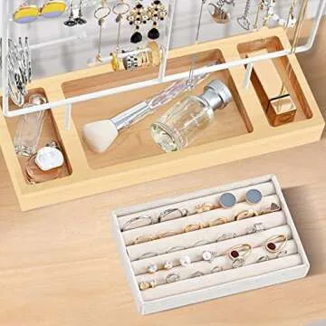 ProCase Jewelry Organizer Stand Earring Holder Organizer, 6 Tiers Earring Organizer Tree Necklace Rack Jewellery Tower Bracelets Holder Storage with Removable Wooden Ring Tray for Women Girls -White