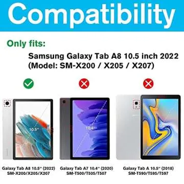 Discover the ProCase Smart Case for the Galaxy Tab A8 10.5, designed specifically for the 2022 release models SM-X200, X205, and X207. This meticulously crafted protective case perfectly blends functionality with style, ensuring your tablet stays safe while looking elegant. Featuring a slim magnetic front cover, it offers reliable protection without adding unnecessary bulk, making it a fantastic choice for both daily use and on-the-go activities.
