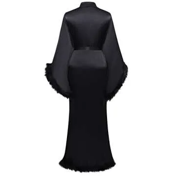 PRODESIGN Satin Robe for Women – Fluffy Fur Seam Long Bath Robe with Collar Bridesmaid Loungewear Nightgown