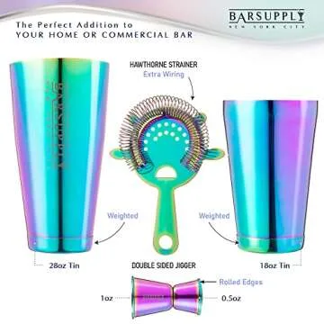 Professional Boston Cocktail Shaker Set | 4-Piece Bar Set | Stainless Steel 304 | 28oz/18oz Weighted Shaker Tins | Hawthorne Strainer | Double Sided Jigger | Recipe Booklet | Bartender Kit