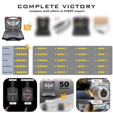 The high-power laser visibility, extensive adapter variety, and superior battery life set the MCREHOTZ bore sight kit apart from other options on the market.