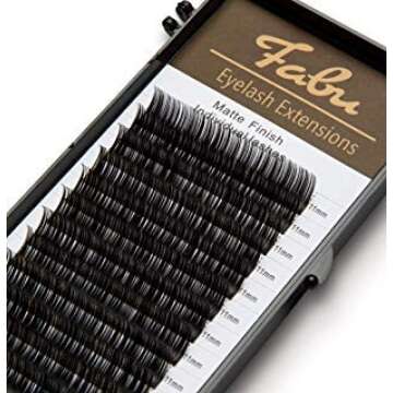 Professional Premade Fans for Lash Extensions – Handmade Volume Lash Fan Tray – Natural Look, Cruelty-Free Mink Lashes for False Eyelash Extension Kit by Fabu, Matte Black, 11mm, Classic 0.15 C-curl