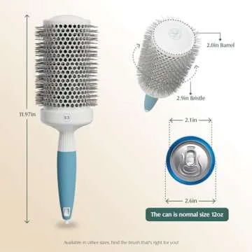 Show more This innovative round brush is designed with a thermal ceramic 2-inch barrel that ensures even heat distribution for quicker drying times. This feature not only saves you time but also keeps your hair healthier by exposing it to less heat. The brush's ergonomic and lightweight handle fits comfortably in your hand, preventing any hand fatigue during styling. You can easily maneuver the brush as you dry your hair, adding to the overall ease of use. Moreover, this hairbrush is heat-resistant, ensuring that it remains cool even after prolonged use.
