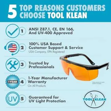 Professional UV Light Safety Glasses - Polycarbonate Shatterproof UVC Protection Goggles for Blocking up to UV 400 Rays and Blue Light - ANSI Z87.1 Approved with Yellow Tint Lens - Regular Fit
