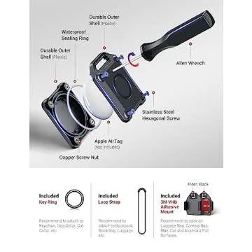 PROfezzion 4-Pack Secure AirTag Holder Air Tag Case with Key Ring, 3M Adhesive Mount & Loop Strap for Keychain, Dog Collar, Backpack, Luggage Bag, Car & More, IPX8 Waterproof, Full Cover & Discreet