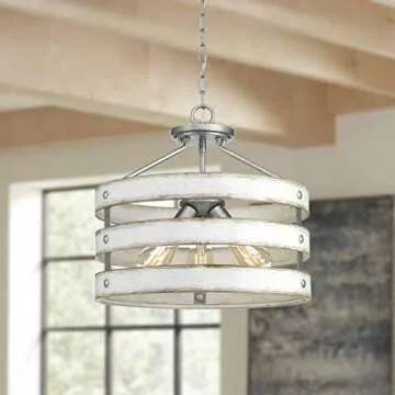 The fixture features a galvanized finish with antique white accents.
