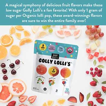 Show more Indulge in the delicious world of Project 7 Low Sugar Organic Certified Golly Lolli's, where health-conscious choices meet mouthwatering flavors. Each delightful pop contains only 1 gram of sugar, making it the perfect guilt-free treat for everyone who loves sweets without the extra calories. With a commitment to quality, these vegan, non-GMO hard candies are crafted using organic ingredients, ensuring you enjoy every bite while caring for your health and the planet. The variety pack includes 4 different flavors, providing a rainbow of tastes that guarantee a sweet experience with every lick, making them an ideal treat for parties, picnics, or just a day out!