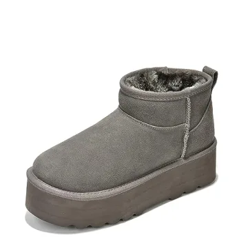 Show more Discover the perfect balance of style and functionality with the Project Cloud 100% Genuine Suede Leather Ankle Boots for women. Crafted with an exquisite 100% high-quality suede exterior, these boots offer a chic and contemporary look that effortlessly complements any winter outfit. Their sleek design is enhanced by a cozy fur lining, ensuring you not only look fabulous but feel warm and snug during those chilly days. With a platform height of 1.75 inches, these boots elevate your look while maintaining comfort, making them an exceptional choice for all-day wear.