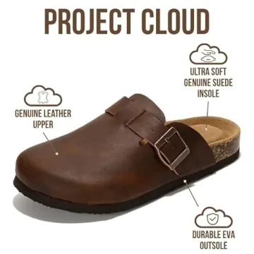 In the crowded market of footwear, the Project Cloud Genuine Leather Clogs stand out through their exquisite craftsmanship and thoughtful design. Unlike many competitors that compromise on comfort for style, these clogs offer both, featuring a unique blend of genuine materials and an adjustable fit. While similar products may lack arch support, our clogs ensure you can walk or stand for hours without feeling discomfort. The use of natural cork in the footbed also sets these clogs apart, providing a balance of longevity and comfort that is hard to find elsewhere.
