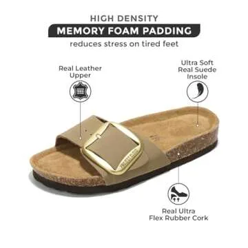 Show moreStep into ultimate comfort and style with the Project Cloud Genuine Leather Sandals, your perfect summer companions. Crafted with a luxurious 100% leather upper and a genuine suede insole, these sandals ensure durability while cradling your feet in unmatched comfort. The innovative natural cork footbed molds to the unique shape of your feet, promoting an effortless fit for all-day wear. Whether you're running errands or enjoying a day at the beach, these sandals provide the support and elegance you need to take on any occasion with confidence.