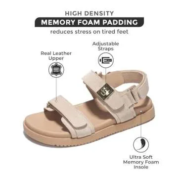 Project Cloud Leather Womens Sandals Comfortable & Adjustable Walking Sandals Women Footwear - Strappy Sandals for Women - Flexible Women's Sandals For Women 2025 (Mona, Nude, 8)