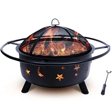 Project One Outdoor Fire Pit - 30 Inch Round Bonfire with BBQ Grill Grate, Spark Screen & Poker