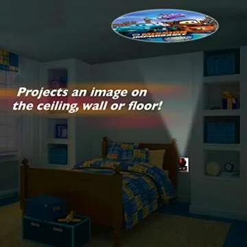 This projector night light is designed with a *dusk-to-dawn sensor*, ensuring effortless operation. It automatically turns on at dusk to bathe the room in a soft red glow, providing a comforting guide light while projecting up to a 3-foot scene of thrilling action on any wall, ceiling, or floor within an 8 to 12-foot range. The light is not only adjustable but energy-efficient, remaining cool to the touch—making it perfect for little hands exploring their space.