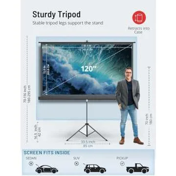 Projector Screen with Stand, HYZ 120 inch Projector Screen 4K HD with Wrinkle-Free Design, Indoor Outdoor for Backyard Movie Night, Office Presentation(1.1Gain, 4:3, 160°Viewing Angle&Carry Bag)