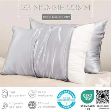 Show more If you're searching for the perfect blend of luxury and practicality, look no further than the PROMEED 100% Mulberry Silk Pillowcase. This exquisite pillowcase, crowned with the prestigious Good Housekeeping Bedding Award 2025 for Best Value, offers an unparalleled sleeping experience. Crafted from **100% organic Grade 6A+ Mulberry silk**, it ensures your skin rests on a fabric that is free from harmful substances thanks to its OEKO-TEX Standard 100 certification. Its incredibly soft and breathable material features exceptional moisture-wicking properties that keep you comfortable throughout the night.