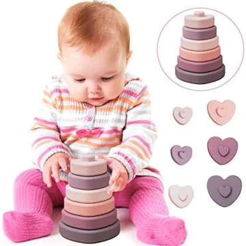 Promise Babe Silicone Stacking Toys Heart Shape Stacking Blocks Soft Baby Toy 6pcs Building Stacker