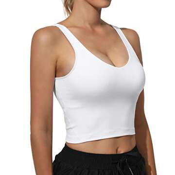 Promover Women Padded Sports Bra Fitness Workout Running Shirts Longline Yoga Athletic Gym Camisole White Crop Tank Tops (White, XXL)