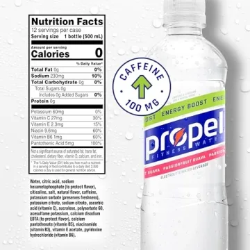 Show more Introducing the Propel Energy Boost Zero Calorie Flavored Water, the ultimate hydration solution for those who lead an active lifestyle! This 12-pack variety includes four bottles each of Blueberry Acai, Passion Fruit Guava, and Raspberry Green Tea, ensuring that you have a refreshing drink at hand to keep you energized. Each 16.9 fl oz bottle is not just a thirst quencher; it is packed with essential electrolytes, staying true to its roots by being crafted by the makers of Gatorade. Perfect for hydrating after a workout or when you need a quick pick-me-up, Propel combines delicious flavors with functional benefits to redefine your hydration experience!