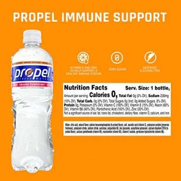 Propel Immune Support with Vitamin C + Zinc, Orange Raspberry, 16.9oz Bottles, Pack of 6