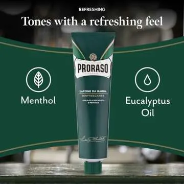 Show moreElevate your grooming routine with Proraso Refreshing Shaving Cream for Men, a premier choice among shaving enthusiasts dedicated to delivering an exceptional shaving experience. Crafted in Italy, this luxurious cream not only promises to soften your skin for a close shave but also infuses your ritual with a refreshing burst of eucalyptus oil and invigorating menthol. Designed for all skin types, including sensitive skin, Proraso shines through its dedication to quality and performance.
