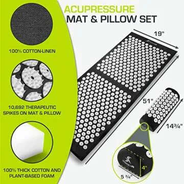 ProsourceFit Acupressure Mat and Pillow Set for Back/Neck Pain Relief and Muscle Relaxation, XL - Black/White