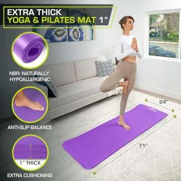ProsourceFit Extra Thick Yoga and Pilates Mat ½” (13mm) or 1" (25mm), 71-inch Long High Density Exercise Mat with Comfort Foam and Carrying Strap, Grey