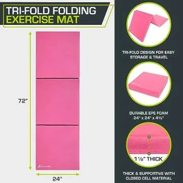 Show moreTransform your workout routine into an extraordinary experience with the ProsourceFit Tri-Fold Folding Exercise Mat. Expertly crafted for comfort and convenience, this premium exercise mat is a game-changer for fitness enthusiasts of all levels. Designed to support your most intensive workouts, its impressive 1.5-inch thick cushion adapts effortlessly for gym exercises, yoga, martial arts, or even casual stretching sessions. With generous dimensions of 72 inches in length and 24 inches in width, it offers a spacious area for diverse movements, whether you're training for strength or simply indulging in some much-needed self-care.