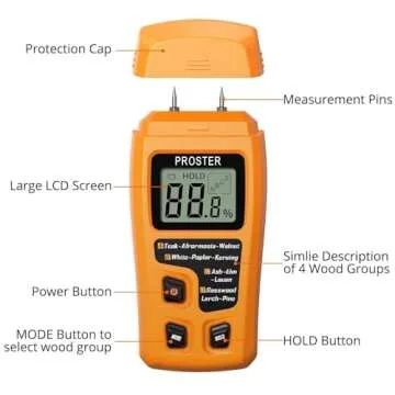 Proster Wood Moisture Meter - Digital Moisture Detector Moisture Tester, Pin-Type Moisture Detector Damp Tester for Wood Firewood Paper Floor