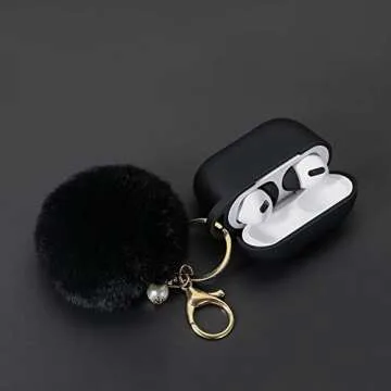 Protective Case Cover for Airpods Pro Charging Case with Ear Tips 1 Pair Kit, Air Pods Silicone Case with Soft Cute Ball Pom Pom Keychain Kit Together with Ear Buds Tips 2&1 (X, Black)