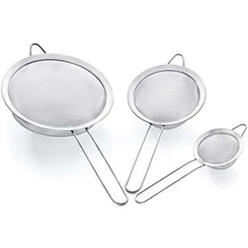 Proto Future Strainer Set Fine Mesh – Premium 304 Stainless Steel (18/8) – 3.3″, 5.5″ and 8″ Sturdy Kitchen Strainers (Silver)