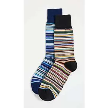 Show moreIntroducing the PS Paul Smith Men's Two Pack 'Signature Stripe' Socks, the perfect fusion of style, comfort, and functionality. Crafted with a breathable cotton blend, these socks are designed for optimal comfort, allowing your feet to feel fresh all day long. The multicolor stripes, a hallmark of Paul Smith's signature style, add a vibrant splash to your wardrobe, making them an ideal accessory for any outfit. With one size fitting most, the versatile design ensures that everyone can enjoy these stylish socks.