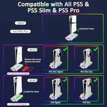Unleash the full potential of your PlayStation 5 with the PS5 Pro Cooling Station, an all-in-one vertical stand designed for ultimate performance and efficiency. This multifaceted accessory is compatible with all PS5 models—including the latest 2024 PS5 Pro, 2023 PS5 Slim (both digital and disc versions), and the standard 2020 PS5—ensuring that your gaming setup is versatile and future-proof. The elegant design not only enhances the aesthetics of your gaming station but also provides...