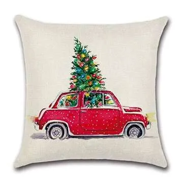 PSDWETS Christmas Decorations Christmas Tree Red Car Cotton Linen Throw Pillow Covers Set of 4 Cushion Cover 18 X 18