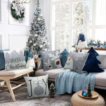 PSDWETS Christmas Pillow Covers 18x18 Set of 4 Christmas Decorations Snowman Deer Christmas Tree Winter Holiday Decor Throw Cushion Case for Home Couch