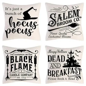 PSDWETS Halloween Decor Throw Pillow Covers Set of 4 Halloween Decorations Hocus Pocus Farmhouse Saying Fall Pillow Covers 18 x 18 Inches for Home Couch