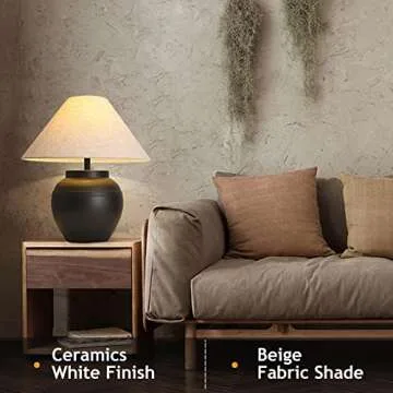 PSXPSXO Black Ceramic Table Lamp 20.4" Rustic Farmhouse Table Lamps Handmade Ceramic Lamp Body with White Textured Shade Bedside Nightstand Lamp for Living Room Bedroom Office