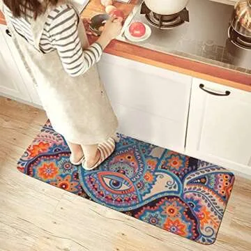 What sets the Psychedelic Evil Eye Charm Kitchen Mat apart from traditional kitchen mats? While many options may sacrifice design for functionality, this mat perfectly balances both stylish aesthetics and durable performance. Many competitors may not offer a design that holds cultural significance, nor the robust material composition that ensures long-lasting use. Plus, its ease of cleaning and unique design offer an enticing mix that is hard to find elsewhere, making it the ideal choice for anyone looking to enhance their kitchen environment.