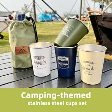 Pubgeer 4pcs Camping Cup 11oz Wilderness Theme Pattern 18/8 Stainless Steel for Outdoor Picnic Hiking Fishing Pint cup Tumbler Gift 4 colors