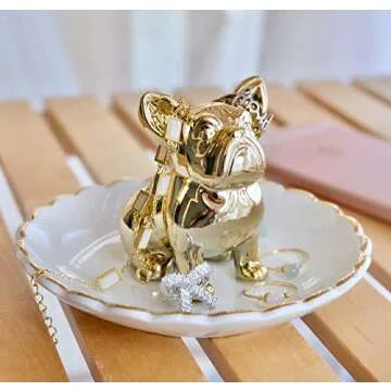 With its whimsical bulldog design, this jewelry tray stands out, ensuring that your precious items have a stylish home. It’s not only a fantastic way to organize your jewelry, including necklaces, earrings, and bracelets, but it's also perfect for holding your rings while you wash your hands or get ready for bed. No more misplacing your favorite pieces – this tray provides a designated spot to keep everything safe and secure!