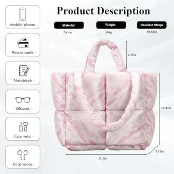 Embrace the convenience of a stylish bag that suits every aspect of your life! This puffer tote bag not only complements your outfits, but it also makes commuting, shopping, and traveling a breeze. When you invest in this bag, you're not just choosing fashion; you’re embracing a lifestyle of elegance, practicality, and comfort.