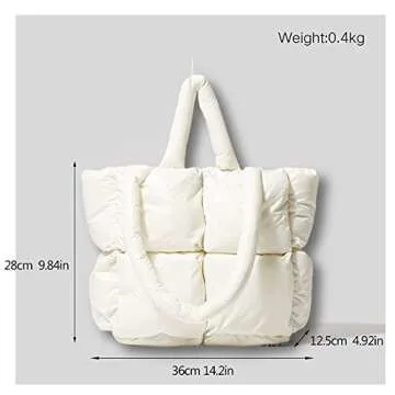 Show more Introducing the most fabulous addition to your accessory collection, a premium shoulder bag crafted from high-quality Nylon, designed to elevate your everyday look while providing unmatched functionality. This stylish tote is generously filled with Down Cotton, ensuring durability that can withstand the rigors of daily use, making it your dependable companion for any occasion. Measuring 14.2 x 4.9 x 9.8 inches (or 36 x 12.5 x 28 CM), this bag strikes the perfect balance between spaciousness and comfort, allowing you to carry all your essentials without sacrificing your style.