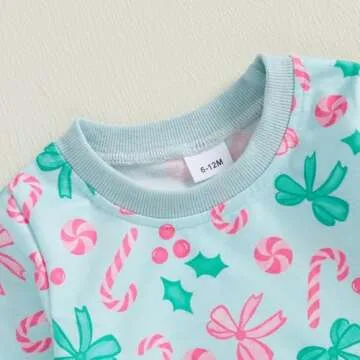 PUHHAPIEY Baby Girl Fall Winter Outfits Toddler Clothes Long Sleeve Bow Printed Crewneck Sweatshirt + Pants Set (Pale Turquoise, 3-4T)
