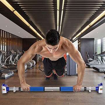 Show moreIntroducing the Heavy Duty Pull Up Bar for Doorway, a perfect blend of strength, versatility, and safety crafted for fitness enthusiasts who value performance and durability. Whether you're planning to tone your upper body, enhance your core strength, or integrate effective home workouts into your routine, this multifunctional chin-up bar is designed without screws, ensuring a hassle-free installation on most doorways. With its lock-in mechanism, this pull-up bar guarantees safety by providing a solid grip, allowing users to focus on their workouts without worrying about stability or the need for additional mounting gear. Constructed with industrial-grade materials, the stunning blue finish not only adds style but also durability, making it suitable for both men and women.