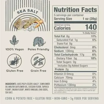 Pulp Pantry Veggie Tortilla Chips, Gluten, Potato and Corn Free, Delicious Snack Food, Seen On Shark Tank! (Sea Salt, Pack of 2)