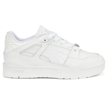 Show moreStep up your footwear game with the PUMA Womens Slipstream Leather Lace Up Sneakers. Designed for casual elegance and everyday wear, these stylish sneakers feature a durable leather upper that ensures both longevity and a premium look. The unique design includes a synthetic quarter and tongue for enhanced breathability, while the tumbled leather toe and quarter cage overlays add an intricate touch of sophistication. Showing off the classic PUMA brand, the deboss and printed Slipstream logo on the tongue not only signifies authenticity but also brings forth a chic style statement that sets you apart.